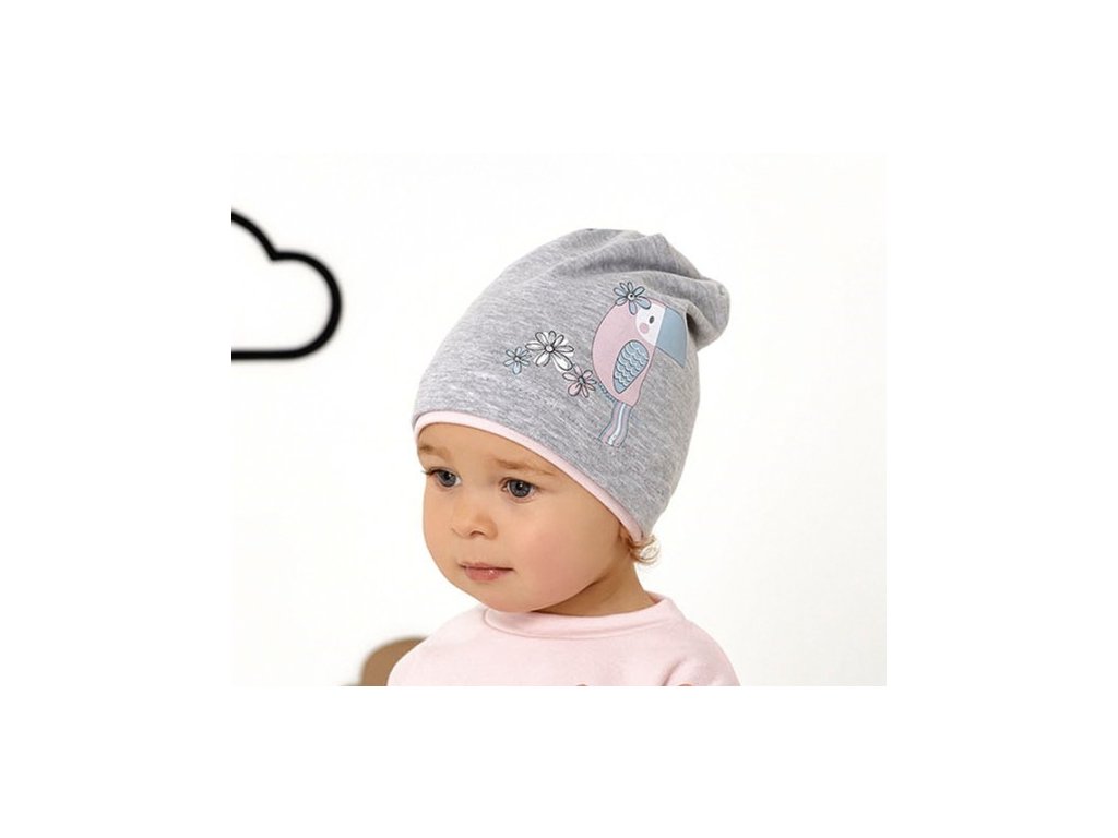 Dívčí jednovrstvá čepice s aplikací ptáčka.