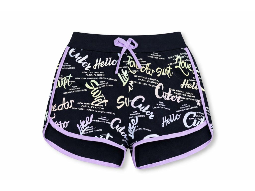 KUGO dívčí letní šortky - černé s fialovým lemem