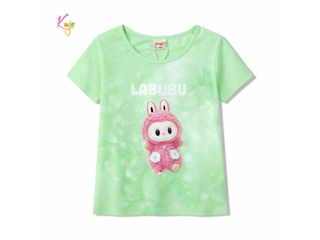 🌸 Kugo dívčí bavlněné tričko Labubu – zelenkavé