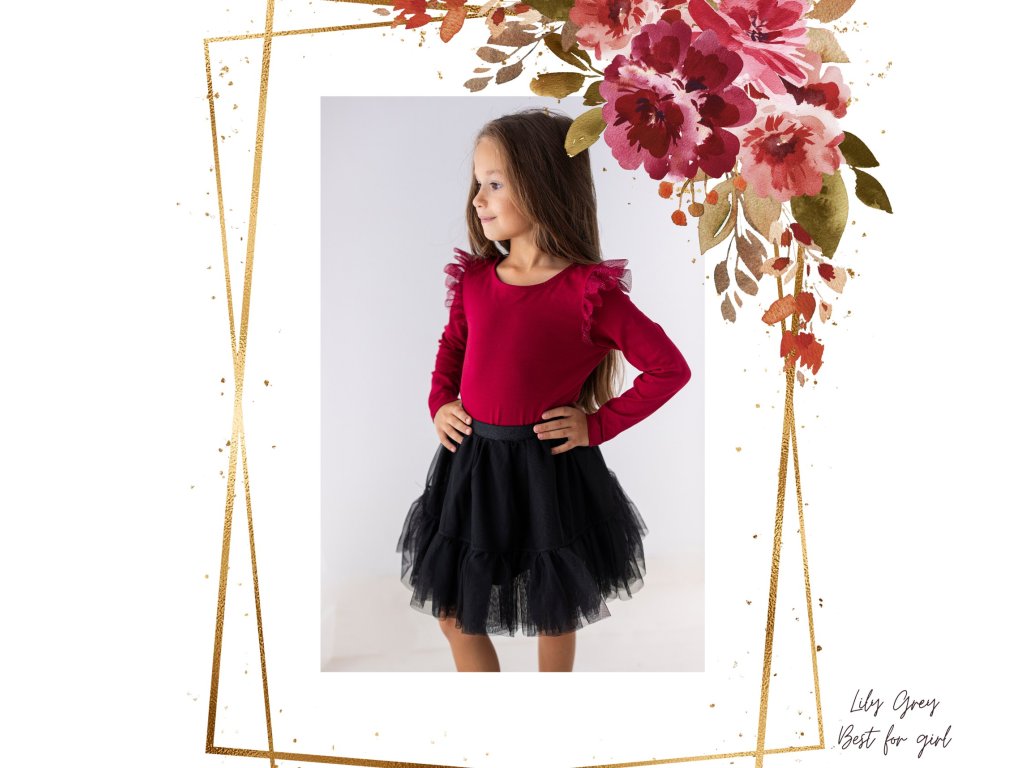 LILY GREY Dívčí tričko s tylovými rukávy, bordó