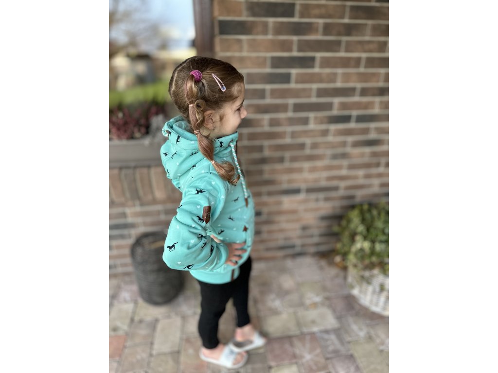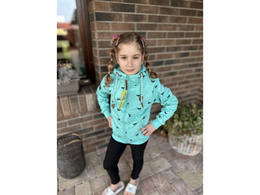 VinTe Dívčí mikina s koníky, tyrkysová